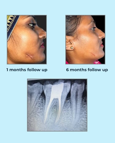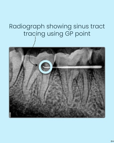 A classic example of why sinus tract tracing should never be skipped. A young patient reported with a persistent facial sinus. No intraoral swelling or pain, yet the culprit was a necrotic lower right first molar with a chronic periapical abscess.