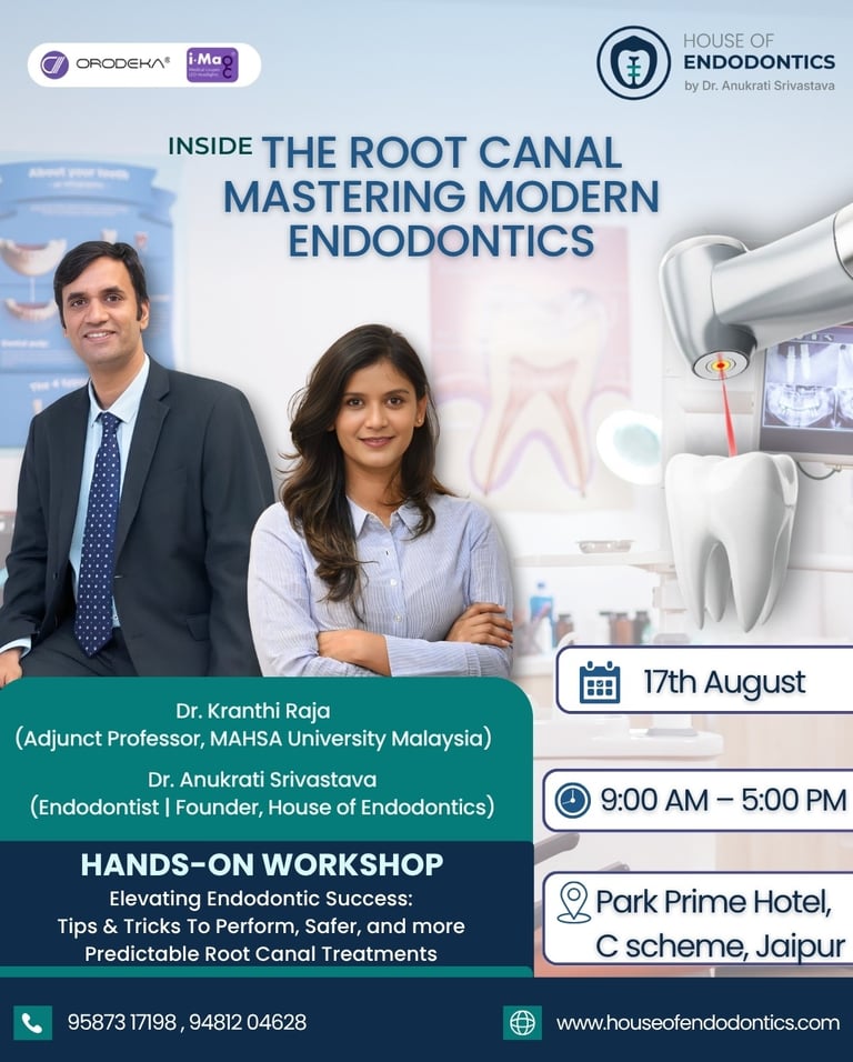 This workshop is ideal for dental PG students, budding endodontists, and practicing clinicians who want to refine their root canal skills using modern techniques.